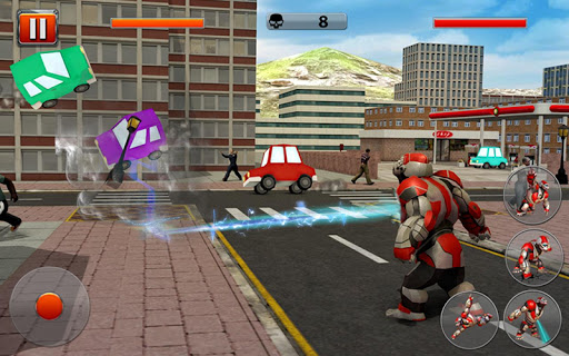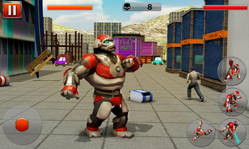 As you progress in the game by causing more destruction, your enemies will multiply! Rescue heros will appear and try to stop you. Take down cops and police, firefighters, and other brave humans. Face different challenging tasks to complete the mission. Feel the thrill of disturbing unexpecting pedestrians. Thrash and run through the city unrelentlessly and steal food! Choose your favorite RoboKong skin, and enjoy the colossal, detailed, modern urban environment.