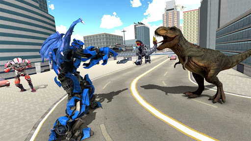 Let the futuristic battle of robots begins in Real Transforming Dragon Robot VS Jurassic Dino World to destroy the animal robots & build your robo dragon into an ultimate machine that can face other jurassic dino worlld monster robot to make this part of best war games. In order to master the city of tiger robot games; the transforming tidragon will destroy all robot animals & start a wild robot fight with transforming robots unseen in other wild panther or robot lion games. Merging the thrilling robotic war scenarios of robot transform from spider robot war games & the future war strategy of real super hero robot games, this robot action simulator will let you become a dragon robot who can save other animal robots and humans in action unseen in other robot transformation games. Let the fight begin in the best robot games & have fun with the transforming dinosaur & the deadly shooting adventures of action robots. Smooth robot action controls & interesting animations in this dragon flying robot simulator will make you forget other robot animal games. Enjoy fighting with dragon claw, scare transforming robots with your dragon roar & attack monster robots unlike other transforming robot games.