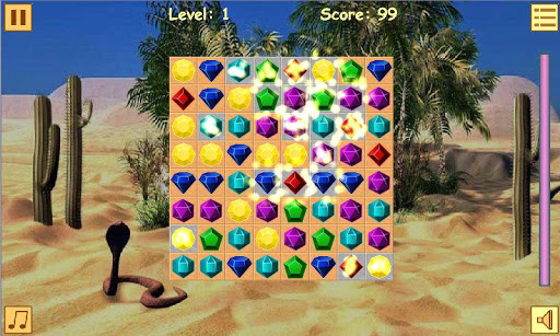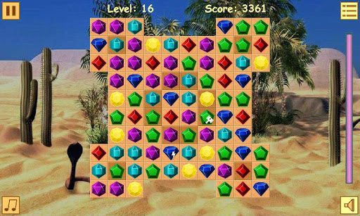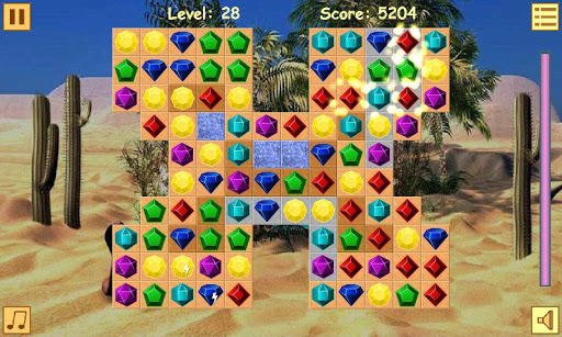 Play the pirate treasure match 3 puzzle. Remove jewels and gems from the screen. Match them in a line of two and more. Smash all colored tiles to complete the level.