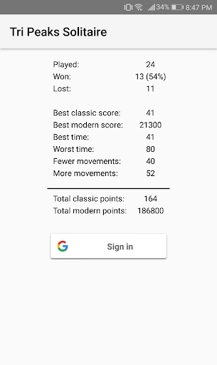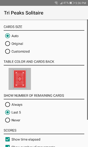 - Settings: Cards size, cards back color, sound, scoreboards, table and scores color,...