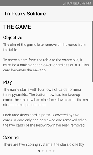 - Exposed cards can be removed if their values total are a rank higher or lower than the waste top card