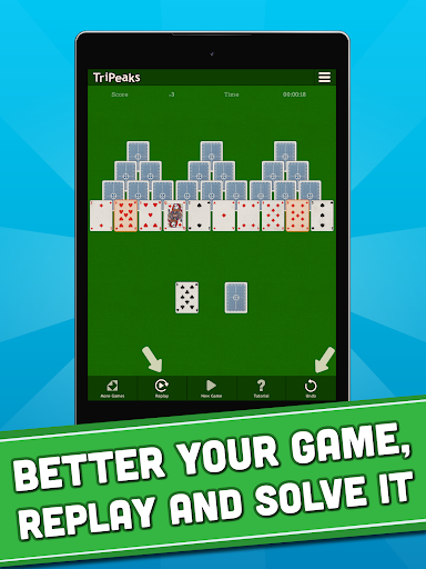 Add TriPeaks Solitaire to your collection of classic card games and you’ll have a great puzzle that is easy to play and re-play. For an additional challenge, try to beat the score of the other players in the leaderboard. Use the undo and replay functionalities to better your time or solve a puzzle that looked impossible.