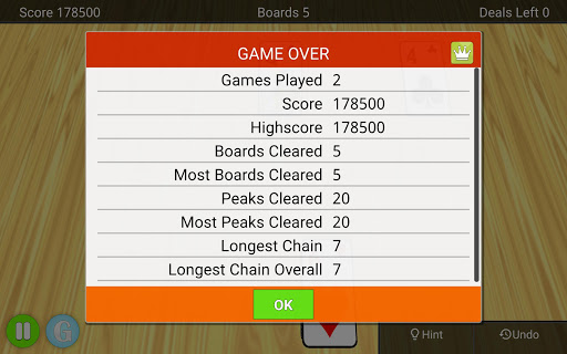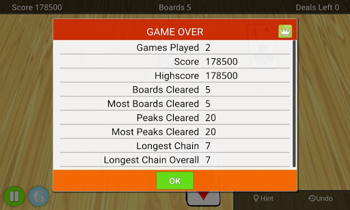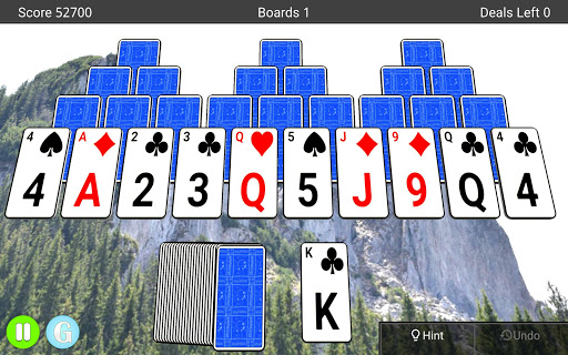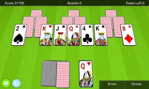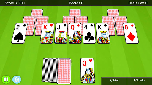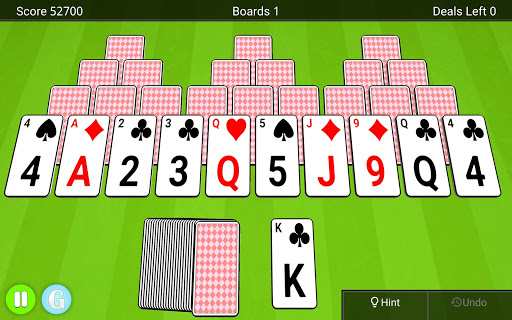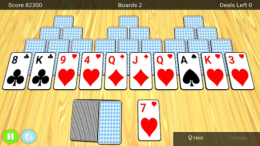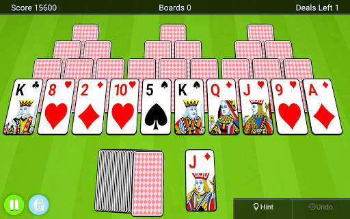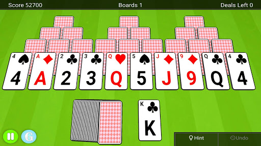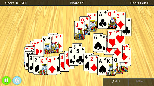 You start with a board of cards that form three pyramids. Over these three pyramids you will find ten exposed cards and at the bottom you will find a deck of cards and a waste pile. The goal of the game is to clear as many boards as possible by tapping cards from the board that is one lower or one higher than the one in the waste pile. You can match any uncovered card.