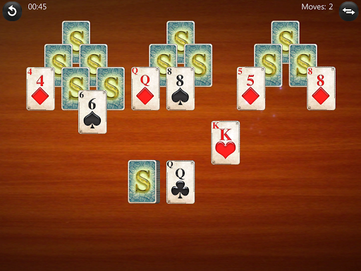 • Three Peaks: There are three peaks (pyramids), each one is 4 cards high. The peaks share the lowest level. The cards at the bottom are face up, the higher ones are face down.