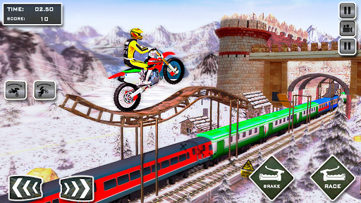 Enjoy this non-stop train vs bike contest with stunt motorcycle and show your interest in train simulator vs Moto stunt adventure. Just enter and play this game. We are going to give you an amazing entertainment of both i.e. bike stunt & train drive. Your task is to accomplish the missions given to you in the specified levels of tricky stunt racing fun and train race. Be a stunt rider to cover up a specific distance in this bike stunt fun.