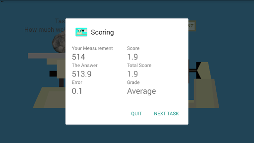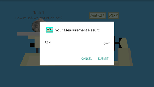 Triple Beam Balance is an simple game that simulate how to measure an object with Triple Beam Balance device. This game have 20 task that must finished by player to learn how to do measurement. In every task player will be given by one random object with random weight. With this app, players are expected to master the basics of using a triple beam balance. Try it and have fun!