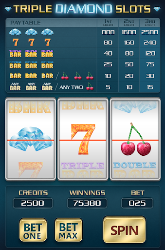 Triple Diamond Slots is a virtual version of your favorite Las Vegas 3 reel, 1 payout line slot machine. It will make you feel like Las Vegas is in the palm of your hand! Big wins and no money comes out of your pocket.