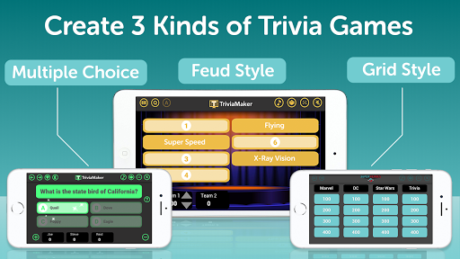 Trivia Maker is an exciting "build your own quiz / gameshow" app. The layout of the board is a lot like the game Jeopardy, Family Feud, Who Wants to be a Millionaire, or other trivia game shows.