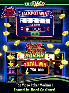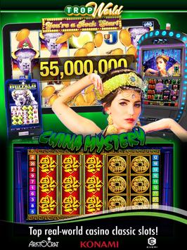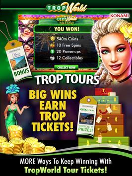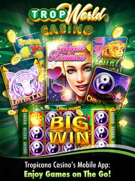 Spin to win on your favorite real casino slots for your chance at a progressive jackpot! Enjoy over 40 top slots titles including hits from KONAMI - featuring China Shores™, Lotus Land™ and Gyspy Fire™! TropWorld features MORE casino favorites including blackjack, bingo, video poker, keno and top slot machines!