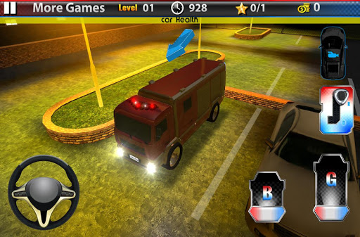 Truck Parking 3D: Fire Truck s a game with 50 campaign missions, these missions will take the player to the parking lot of a big fire station. It will be your responsibility to lead the brave men and women to the end of their duty. You as a fire fighter can control your fire truck with an steering wheel, brake and accelerator pedals. You change the view so you can take a look from at the truck in different situation. Sometimes you need to race to the parking spot, so you got enough time left to park the fire truck.