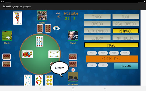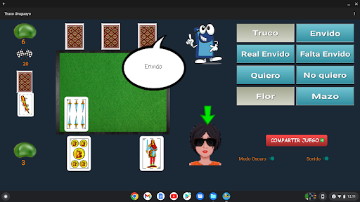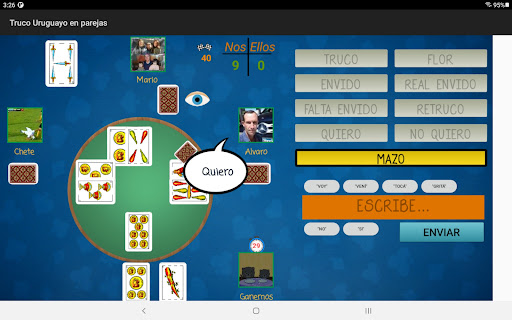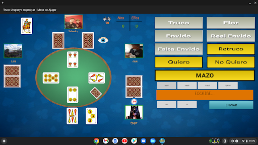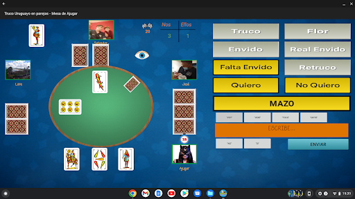 - ¡Nuevo Juego en Parejas! Juega el truco uruguayo con muestra en nuestras mesas en parejas con hasta 4 jugadores. Y con chat integrado en la pantalla!