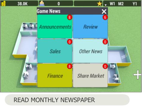 • Features like Investors, Share market , Advance research system,In game managers to hire.
