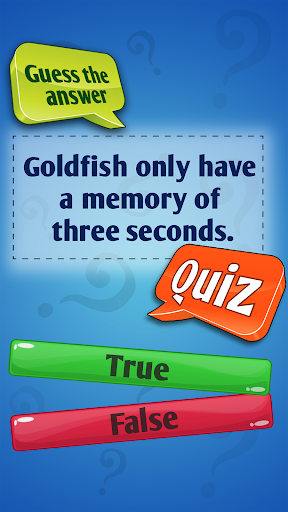 Can you stay in the game? How well do you know current GK? Can you guess the right answer? Take a quiz of knowledge right now! Decide is it true or false and learn while playing. The best multiple choice trivia quiz of knowledge for every smart boy or girl. Test your IQ, speed and memory with the most exciting true or false question and answer game. If there is a single crack in your knowledge, this smart quiz app will find it! Download the latest general knowledge app 2020 in English with true or false questions right now have a blast with loads of interesting facts. This is a real treat for a real fan of fun quizzes and question answer quiz games. Check your knowledge on history, countries and capitals, famous people, actors and actresses, football, basketball and more. Try out some cool addictive games for when your bored. True or false games for kids and adults are the best way to have fun and learn at the same time. Download True Or False Fun General Knowledge Quiz Game App and start the fun right now.