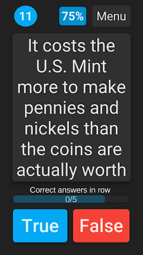 Simple and fun game that is going to test your know knowledge across all kinds of categories. The games gives you a statement and you have to decide if the statement is true or false. There are just these two simple options but the decision wont be so easy. You can compete with others on a ladder
