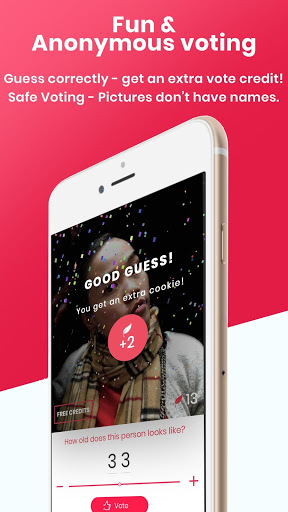 Have you ever asked yourself “how old do I look?” Or you simply wanted to have a “guess my age app” to check if you are really look your age? Well, you can have all that with our accurate age guess and voting app – TrueAge. It’s the most advanced "how old I look" app. With the TrueAge app, you don't ask a computer to guess your age, instead you ask hundreds or thousands of people how old you look on your pictures. People are incentivized to give a real answer because as you guess other user's age, you receive vote credits to spend on your own pictures. Guess correctly and you'll receive 2 credits!