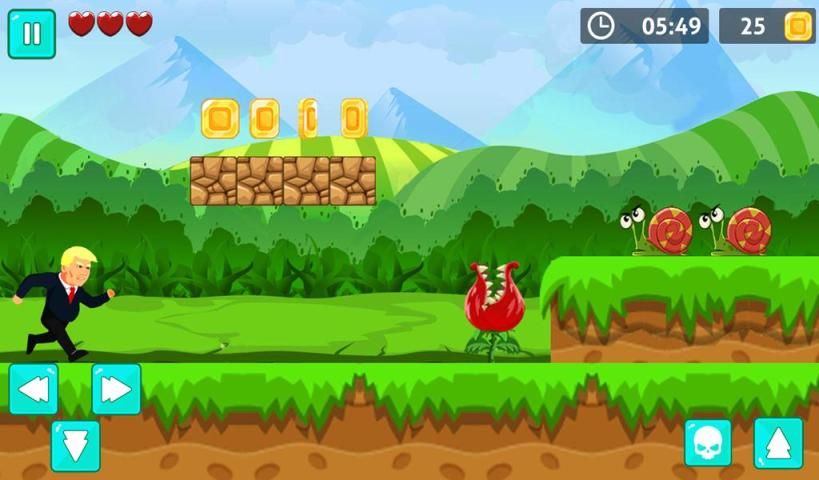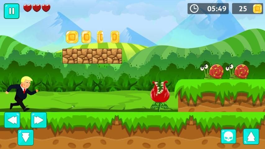 Download this action-arcade adventure game for super running and endless adventures of super trump by having the world tour. Collect double coins and achieve the double score.