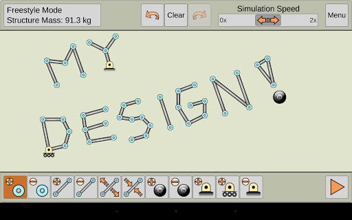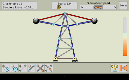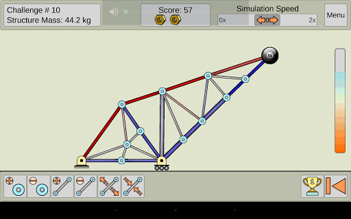Best structure simulation game! It takes into account many realistic factors like buckling, structure weight, material yielding/stretching. Real and unique challenges. Only problem is the challenges are so good you'll want more. I've yet to find another structure game that is even half as good as this. Please update more or make version 2.
