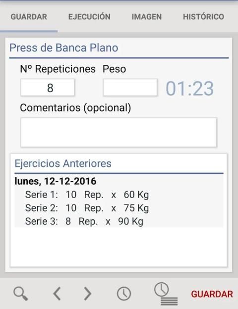Save your workouts with weight and number of repetitions in a historic with which you can check your progress.