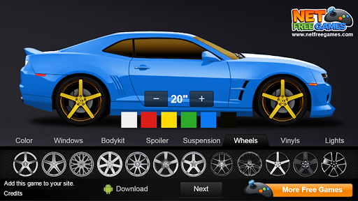 In this tuning game you can customize a Camaron '10, changing parts like body kits, spoilers, wheels, lights, colors, windows, etc. Give it 5 stars and I make more games ;)