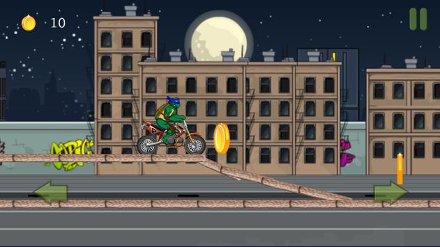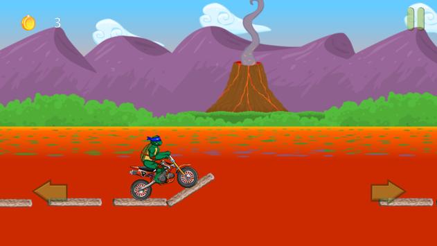 turtles ninja bikers racing it’s fun and addictive turtles ninja game. It’s the perfect to pass your free time and you will never get bored. Awesome turtles ninja gameplay suitable for all ages, if you're an turtles or ninja fan, this Game is made for you, Get turtles ninja bikers racing now for free!
