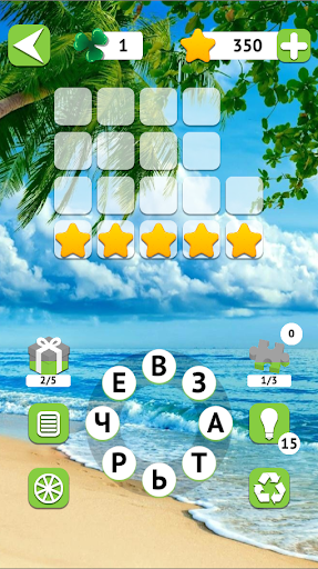 Скачайте игру Новые слова, выберите оформление, найдите слова, соберите пазлы, получите награды.