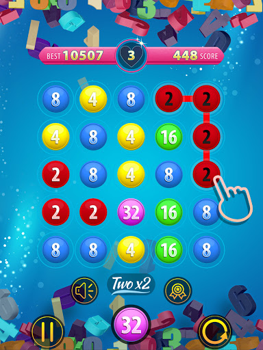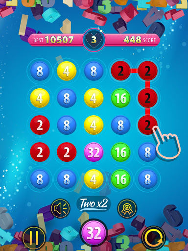 Make lines connecting as many numbered bubbles as possible. The longer is the line, the more points you get. Every time you connect numbers, you get a new doubled number.