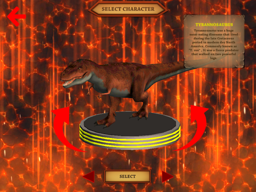 The most exciting battle of the king of dinosaurs , Tyrannosaurus rex or T-Rex has begun in a faraway island full with dangerous from fierce , scary and frightening dinosaurs in many species . Only the strongest one will survive and become the ultimate king of the dinosaurs . To play this game is just to control T-Rex to fight or attack via joystick . This is realistic simulator game of dinosaurs fighting for survival has begun !!!