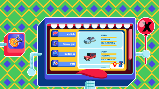 - Invest your coins into upgrading your cars, spray gun and even the city itself!