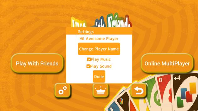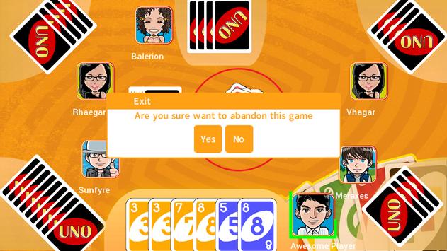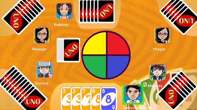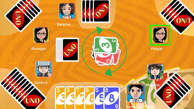 Playing UNO with friends, family, and the millions of fans worldwide has never been easier! This version of UNO, is player between 2-6 players, be it friend or computer player. The aim of the game is to finish your cards first. The player who ends his cards first wins the game.