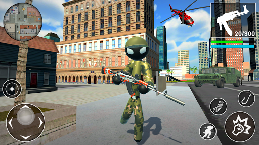 Download now this amazing us army stickman rope hero game and assault war battlefield frontier shooting game, fight against gangsters and perform elite commando war shooting skills and become a real stickman army rope hero.