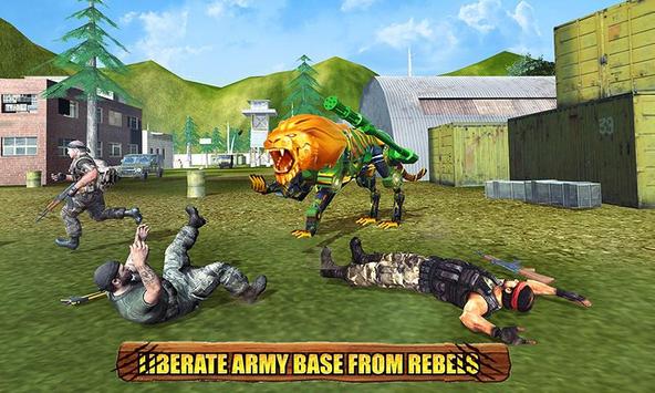 In Army Lion games take control of a furious lion that pounces & does lion attack on prey in jungle of Vietnam. Hey Wild Lion sharpen those hunting skills & get ready for multi robot attack. Wild African Lion game features jungle lion robot tiger plus multi robot battle in unique futuristic robot big cat games & robot animal games. Futuristic robot wars is common in army games & lion games. Wild Jungle Lion of Vietnam is full of real robot transformation games where army robot attack is ready & robot battle is eminent. Army attack has been overrun & can't fight futuristic robot battle of lion games