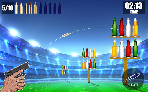 Take care of time limits of each shot in ongoing bottle ultimate shooting and be precise and quick in making your decisions for real bottle gun shot in order to clear that level in real style. Break and smash all the bottles in all the levels and get yourself trained in real bottle shooting which may allow you to turn into high profile bottle gun shooter. It is one the best shooting games for kids as it has trouble free game progress which suits to all age groups specially to children who like shooting games offline free. Fill all gaps of bottle shoot by making grand show of your special 3d bottle shooting talents. Complete all missions and give us your value able feedback and suggest us new levels and we will be happy to consider your feedback.