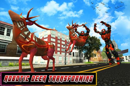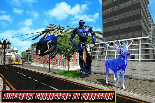 Us Police Robot Deer Transform Helicopter is futuristic robot battle game with interesting gameplay where you play as Robotic police deer as well as police robot hero to save innocent civilians from evil forces. . Choose your favorite flying police robot that can transform into robotic deer as well as weaponry helicopter to fight with that evil battle machines in this action gameplay. You can fly in the air to watch the dangerous activities of the vicious gangsters. Save the innocent peoples with the help of laser attack, backflip kick and with amazing robots fighting combos.