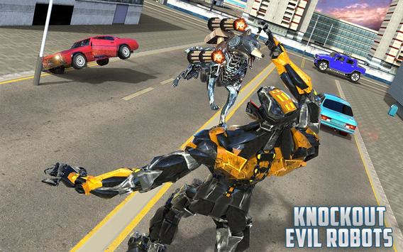 The greed of Antagonist Evil robots made them attack onto crime city. The deadly Suv battle robot war destruction has just begun and demolished the survival city. Our Police dog has made victim to ultimate Suv hummer autobots and get injured. To save innocence civilians from splendid thunder attack of Dark riders and to stop enemies from creating trouble at grand city. The k9 german shepherd has taken to Medical supervision to transform into police car dog robot simulator. Now, Conflict from Devilish Power for the prosperity of civilians and use k9 dog sniffing skills to chase down Suspicious robot transform .