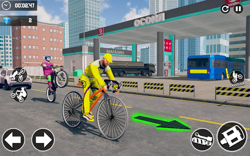 Perform as a best bicycle rider and chained bicycle on impossible circle tracks in air jumping. Ultimate tracks are waiting for you to compete against rivals in racing cycle stunts. Beat your rival and collect all rings. Drive through meadows like fairies and get ultimate pleasures. Remember! If you like bicycle riding games and high jumps candy of racing super bikes under water, then this top gear bicycle racing & stunts simulator 2019 game for boys. Take your bicycle from garage and select character to ride. There are number of modes free mode, level mode and pick up and drop off passengers. The best bicycle for ramp jumping lovers is stunt mode. In this ultimate bicycle driving you can enjoy collecting and passengers pick & drop missions. Jump and crash your way through the amazing impossible tracks as you master your skills and the physics of cycle in this high speed racing adventure.