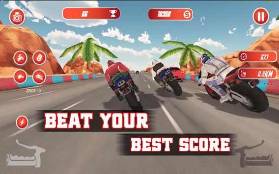 - When you riding over 100 kmh, overtake in heavy traffic cars, truck and other vehicle closely to get bonus scores and cash