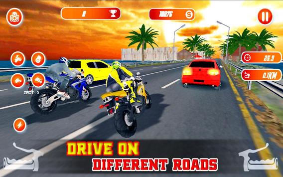 Motorcycling in the busy road and complete the challenges to get feel real among the competition.