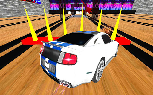 Game play of Ultimate Bowling Alley:Stunt Master-Car Bowling 3D