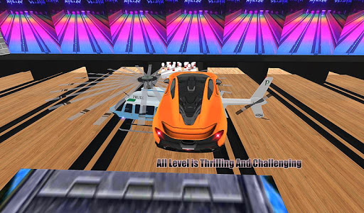 Ten-pin bowling or Nine-pin bowling is a sport in which a player (called a "bowler") rolls a bowling ball down a wood-structure or synthetic (polyurethane) lane and towards ten pins positioned at the end of the lane. The objective is to score the highest pin ball by knocking down as many pins as possible. Three finger holes are drilled into a traditional bowling ball, But in this Car Bowling Master Game Traditional Bowling ball is replace with Realistic Car and You Can Do Stunts During Playing this Ten pin Bowling Game.
