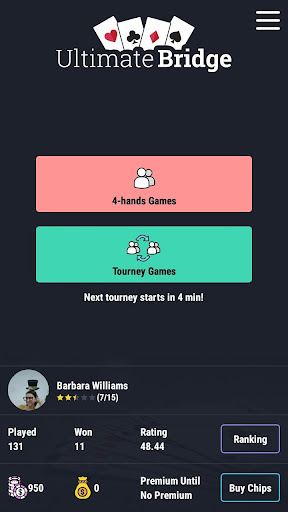 Ultimate Bridge is online bridge card game. Fulfill bridge conventions card and play contract bridge free, in variant of single table 4-hands bridge game or tournament, against other people. You can watch all active bridge games and chat with bridge players in room.