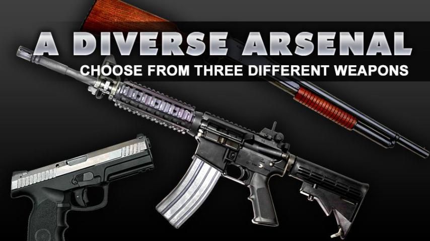 Choose between many different weapons, including Guns, Machine Guns, Assault Rifles, Shotguns, Sniper..