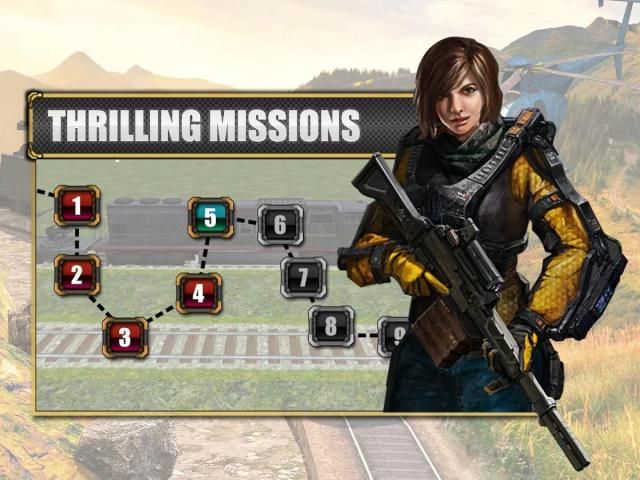You will enjoy slow motion kill shots. Destroy all rivals to end each level. Be careful of the intense cross firing from your enemies as it will lower your health. Rescue train at all cost. Experience the most thrilling air-train combat missions in realistic 3D Environments!