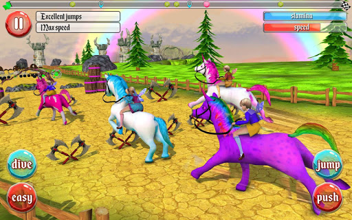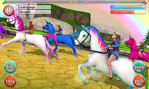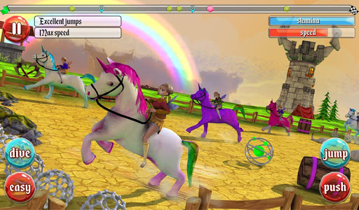 Who said unicorns don’t exist? It’s time to saddle up on a colorful steed. This mythical beast is perfect for fans of fantasy, adventure, and the Medieval Ages. Take your unicorn on a horse racing adventure! Gallop through urban prairies, forests, woods; towns and villages filled with colorful animations! Encounter daring obstacles like sharp hurdles to jump over, and moving land to leap across. Play as a unicorn jockey and take part in different racing missions. Become a Unicorn Derby Champion!