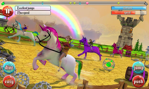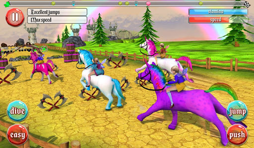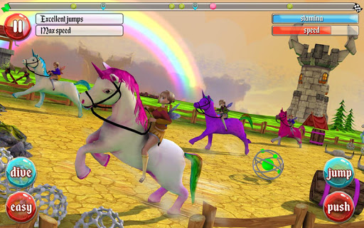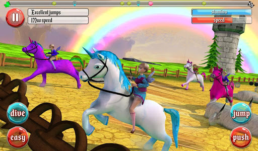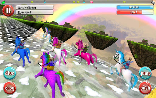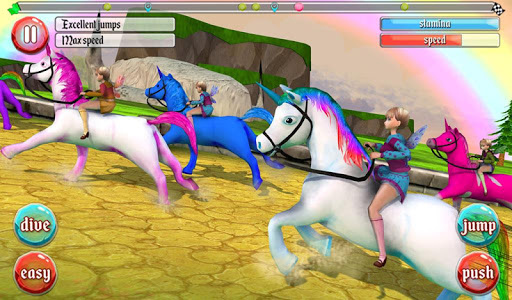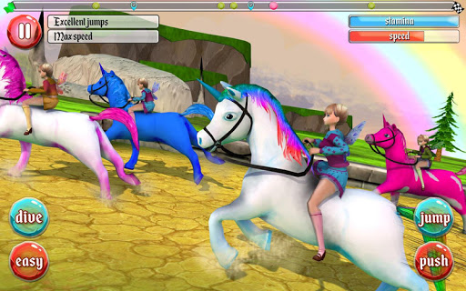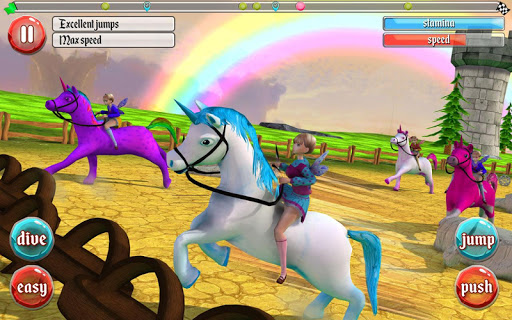 Defeat each level to conquer more thrilling challenges. Employ master moves with your unicorn. Activate booster to speed up. Practice makes perfect! Straying off course will cost you time. Stay on track and wipe out your competition at the finishing line!