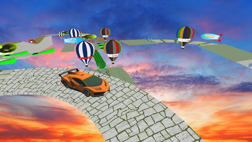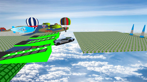 3D Stunt Car Game 2020 is played in a pleasant environment. The sky is blue with clouds on presenting a perfect scenario for the game. Hot air balloons can also be seen in the sky that makes the scene very pleasant and attractive.