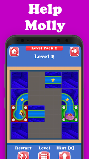 Use your finger and drag blocks to complete the route for Molly, the fish. The tiles with pearls are fixed and can not be moved. You can always tap the hint button and see the right path to Molly's home. PLAY Unblock Fish and have FUN now!