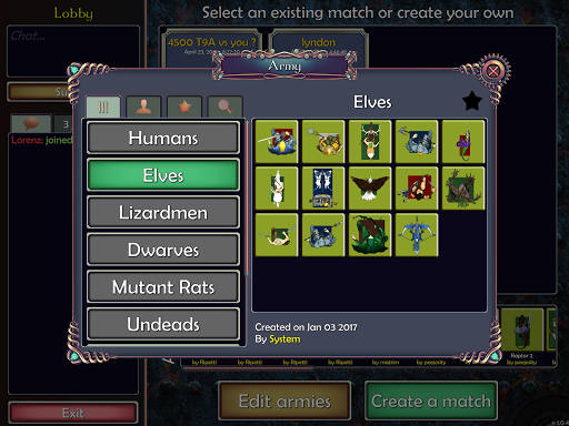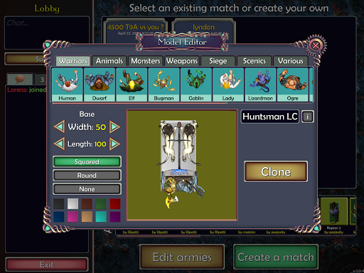 Player have the ability to create their own army and challenge their friends in multiple game modes.
