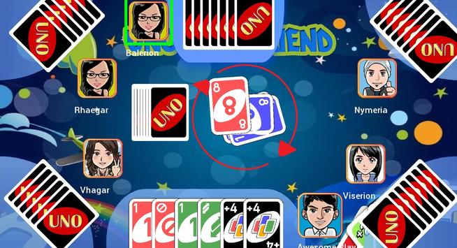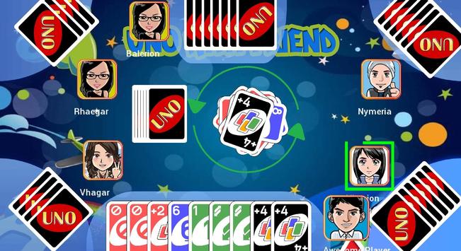 Playing UNO with friends, family, and the millions of fans worldwide has never been easier! This version of UNO, is player between 2-6 players, be it friend or computer player. The aim of the game is to finish your cards first. The player who ends his cards first wins the game.