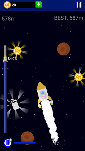 Are you ready for the coolest space exploration of all times? Gear up to show off your rocket control skills in this cool spaceship adventure game. From extremely appealing app layout and smooth controls to thrilling gameplay and exciting challenges, this game is all about keeping you engaged in your free time. Take some time out to indulge in this awesome adventure and complete daily goals to earn cash and enjoy new rockets by spending the cash. Try it now!