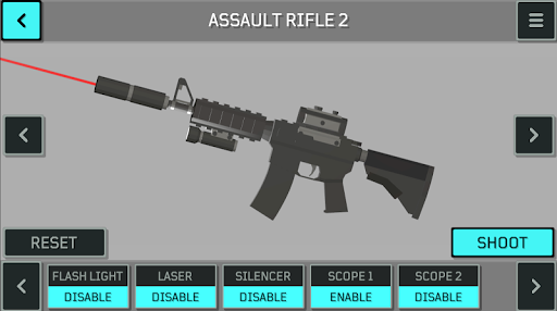 Wait no more for amazing gun builder and simulator. Try your favorite gun free and modify it according to your taste. Use a variety of add-ons to further enhance your weapon's ability and put them to test with actual shooting.